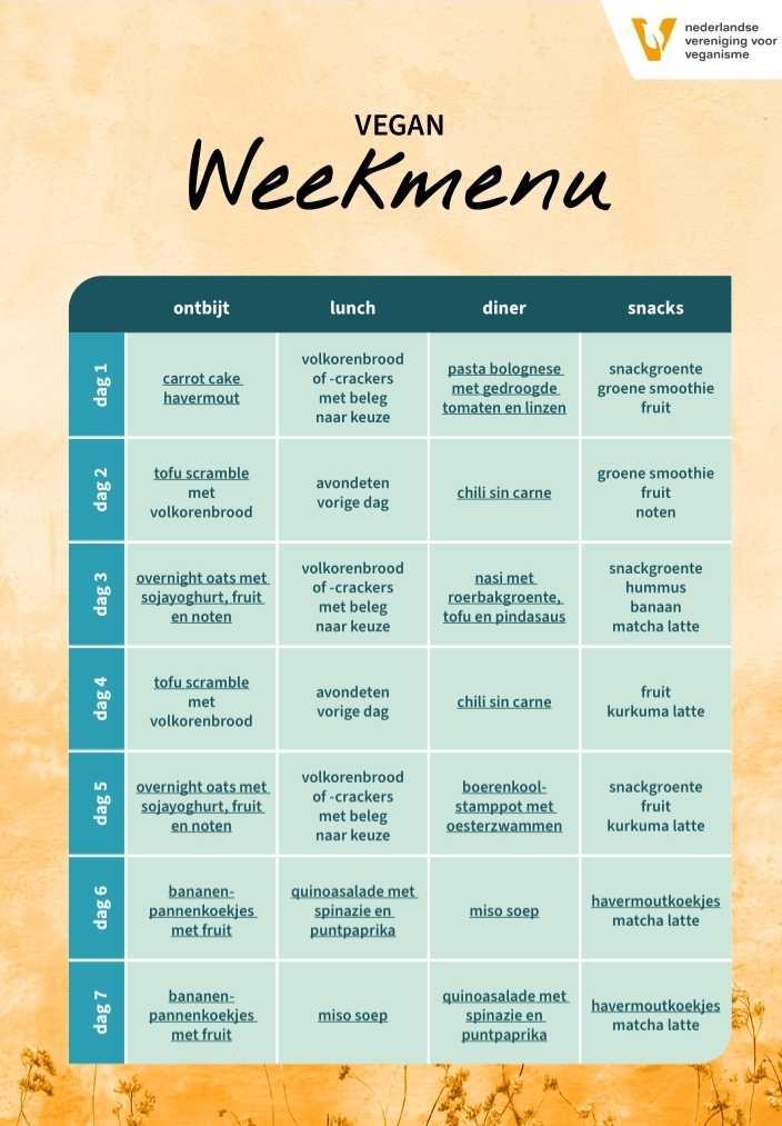 Het vegan weekmenu bevat: